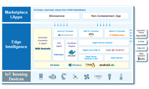 WISE-DeviceOn กับ Edge Computing จำนวนมากมาพร้อมฟังก์ชันการใช้งานต่าง ๆ เช่น การรวบรวมข้อมูล, การจัดการอุปกรณ์เชื่อมต่อ, การคำนวณและวิเคราะห์ข้อมูลแบบเรียลไทม์ ซึ่งฟังก์ชั่นต่าง ๆ เหล่านี้มีรูปแบบที่ง่ายต่อการใช้งานและสะดวกต่อผู้ใช้ จึงสามารถเชื่อมต่อกับเครือข่ายและเริ่มใช้แอปพลิเคชันของคุณได้ทันที หากฟังก์ชั่นเบื้องต้นไม่เพียงพอต่อการใช้งาน ผู้ใช้งานสามารถเลือกบริการต่าง ๆ เพิ่มเติมได้ที่ WISE-Marketplace