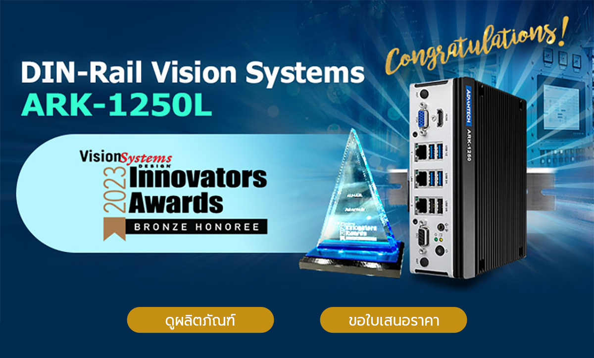 ARK-1250L DIN-Rail Edge Computer ได้รับรางวัล Bronze Honoree จาก Vision Systems Design's Innovators Awards ประจำปี 2023 ซึ่ง ARK-1250L สร้างความโดดเด่นจากนวัตกรรมของคู่แข่งนับพันรายการ และได้รับการยอมรับในหมู่ผู้ได้รับรางวัลเหรียญทองแดงที่ดีที่สุดในหมวดหุ่นยนต์ ARK-1250L ขับเคลื่อนด้วยโปรเซสเซอร์ Intel® Core™ i5/i3 เจนเนอเรชัน 11 มอบพลังการประมวลผลประสิทธิภาพสูงที่ตอบสนองด้วยความสามารถ AI/Deep Learning และการใช้พลังงานต่ำ โดยระบบ DIN-Rail มีขนาดกะทัดรัด ให้ความยืดหยุ่นสูงสำหรับการใช้งาน AOI, AGV/AMR และอุปกรณ์อุตสาหกรรมที่หลากหลาย พร้อมการเชื่อมต่อ I/O อเนกประสงค์ และโมดูลขยาย iDoor I/O ที่เลือกไว้มากกว่า 10 รายการ ดังนั้นการได้รับการยอมรับจาก Vision Systems Design นี้จึงเป็นข้อพิสูจน์ที่แท้จริงถึงการออกแบบเชิงนวัตกรรมและคุณค่าของผลิตภัณฑ์ของเรา หากท่านสนใจ ARK-1250L DIN-Rail Edge Computer สามารถกดได้ที่ลิงก์ด้านล่างนี้